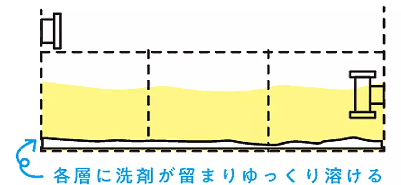 美らちゅら超洗浄は一度に完全に溶けず、時間をかけて溶けてゆきます。 グリストラップへの流量により異なりますが、残った洗剤が徐々に溶けて効果が持続するため日々のお掃除や嫌なニオイの防止・虫の発生防止効果が持続します。
